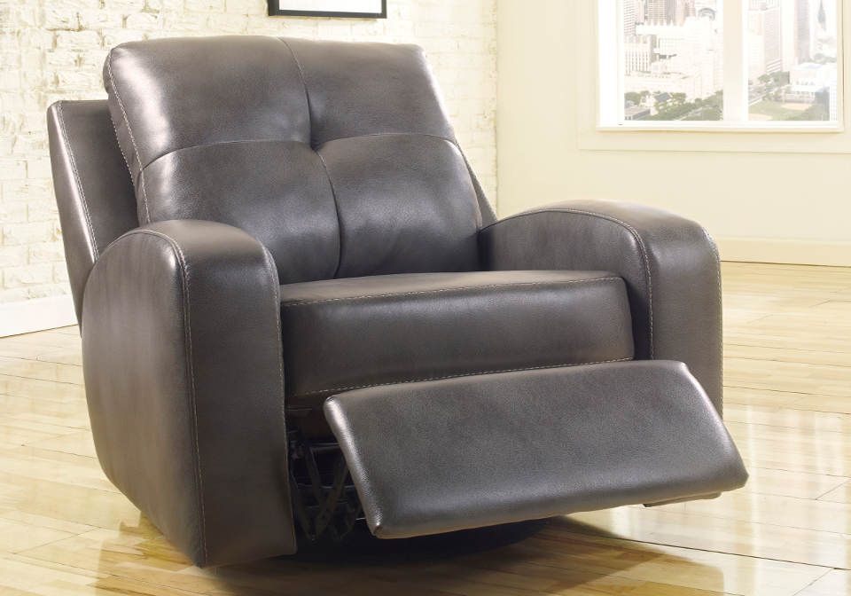 tufted back cushion provides ample support while subtle topstitching weaves a stylish touch. Smooth gliding motion provides extra comfort and the 360-degree swivel offers freedom to face in any direction. The reclining lever is easily accessible yet cleverly hidden on the inside of the arm. Seating area is covered in lush DuraBlend® that provides the look and feel of leather without the cost.