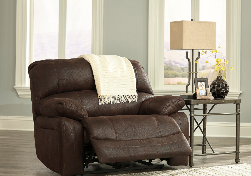 blocked and stapled. Stripes and patterns are match cut. All fabrics are pre-approved for wearability and durability against AHFA standards. Cushion cores are constructed of low melt fiber wrapped over high quality foam. Features metal drop-in unitized seat box for strength and durability. All metal construction to the floor for strength and durability. The reclining mechanism features infinite positions for comfort. Style features Jumbo Stitching.