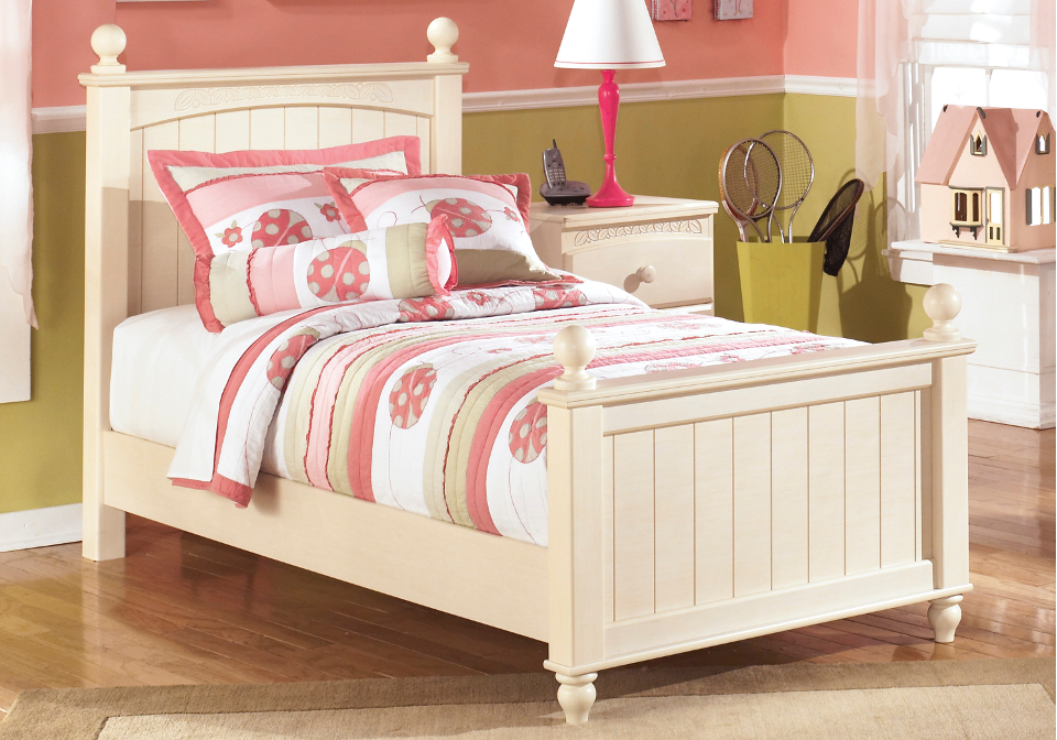 The “Cottage Retreat” youth bedroom collection takes early American country design to create a fun and inviting cottage retreat perfect for any child’s bedroom. The replicated light cream paint with subtle replicated brushing flows over the graphic leaf design patterns and bead board panel accents creating a relaxing atmosphere that is sure to make any child feel at home. Create the special kid’s bedroom with the refreshing design of the “Cottage Retreat” youth bedroom collection.
