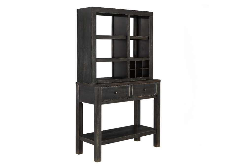 AF-D532-60-61-Gavelston-Dining-Room-Hutch-and-Server1 Published December 9, 2016 at 960 × 672 in AF-D532-60-61-Gavelston-Dining-Room-Hutch-and-Server1 With thick legs supporting the table top bathed in a weathered black finish and a framed detailed apron ← Previous Next →