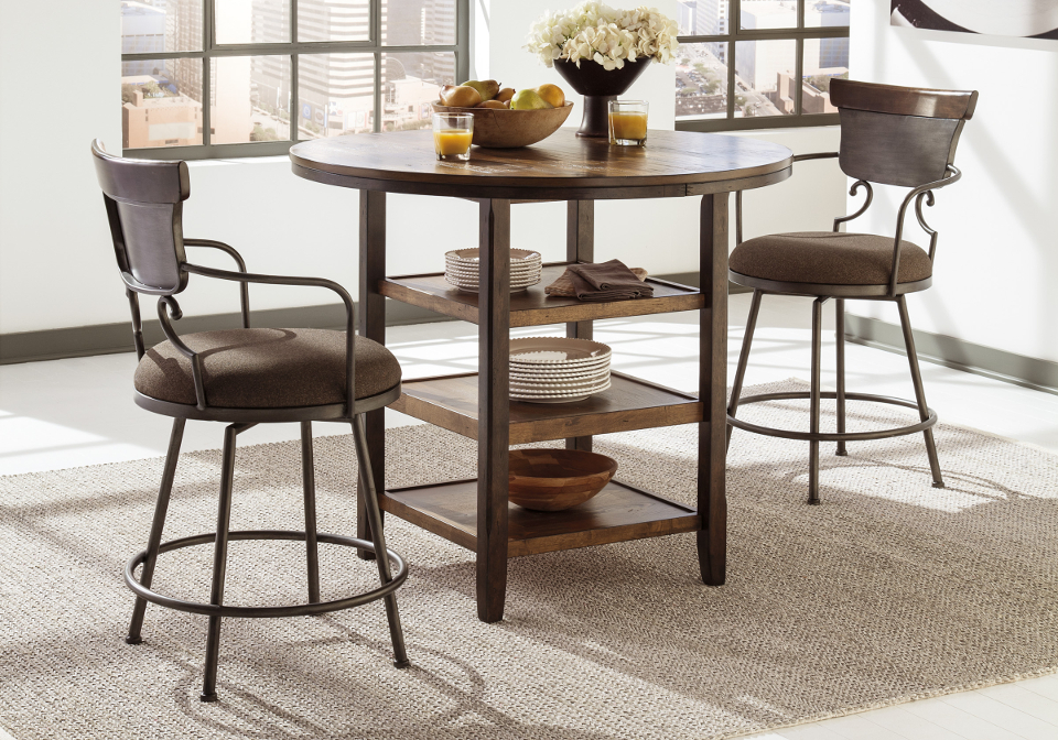 upholstered and metal frame models. Classic wood stools (choice of standard and tall) are finished in a dark wax black patina with contoured saddle seats and turned legs for vintage appeal. Upholstered barstools range from a delightfully different striped linen paired with faux leather