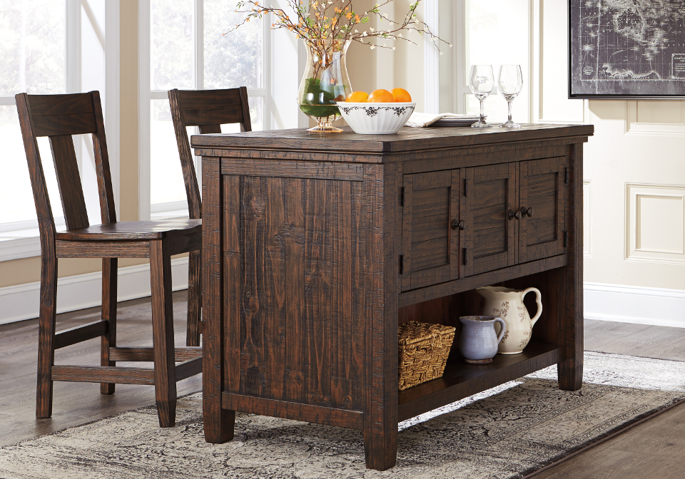 AF-D658-Trudell-Counter-Table-With-2-Barstools2 Published December 9, 2016 at 960 × 672 in AF-D658-Trudell-Counter-Table-With-2-Barstools2 the Trudell dining room table truly is a statement piece. Its distinctive finish with dramatic golden-brown contrasting and subtle wire brush distressing takes the Trudell dining room table from simple to simply extraordinary. ← Previous Next →